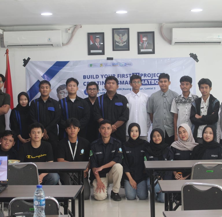 Kegiatan ini diikuti oleh mahasiswa Program Studi Informatika yang menunjukkan antusiasme tinggi selama sesi berlangsung. Peserta aktif berdiskusi, bertanya, serta mencoba langsung membuat chatbot sederhana. Melalui workshop ini, diharapkan peserta dapat meningkatkan pemahaman dan keterampilan di bidang kecerdasan buatan, serta termotivasi untuk mengembangkan proyek-proyek inovatif berbasis AI di masa depan.